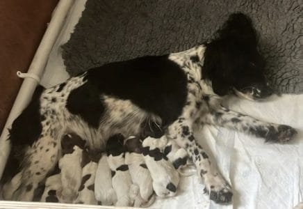 Kennel Club registered black & white dog. Out of our black bitch, Thorneyash Bollinger of Hageneth sired by FTCH Cindersash Lyric of Edgegrove. Mother can be seen, along with previous sisters kept back from last litter, 5.5 weeks old at current. Ready to leave us Saturday 9th August. Health vet checked and legally 3/4 docked. Vets docking certificate will go with puppy. Located: Stowmarket, Suffolk. Contact Lewis for more information.