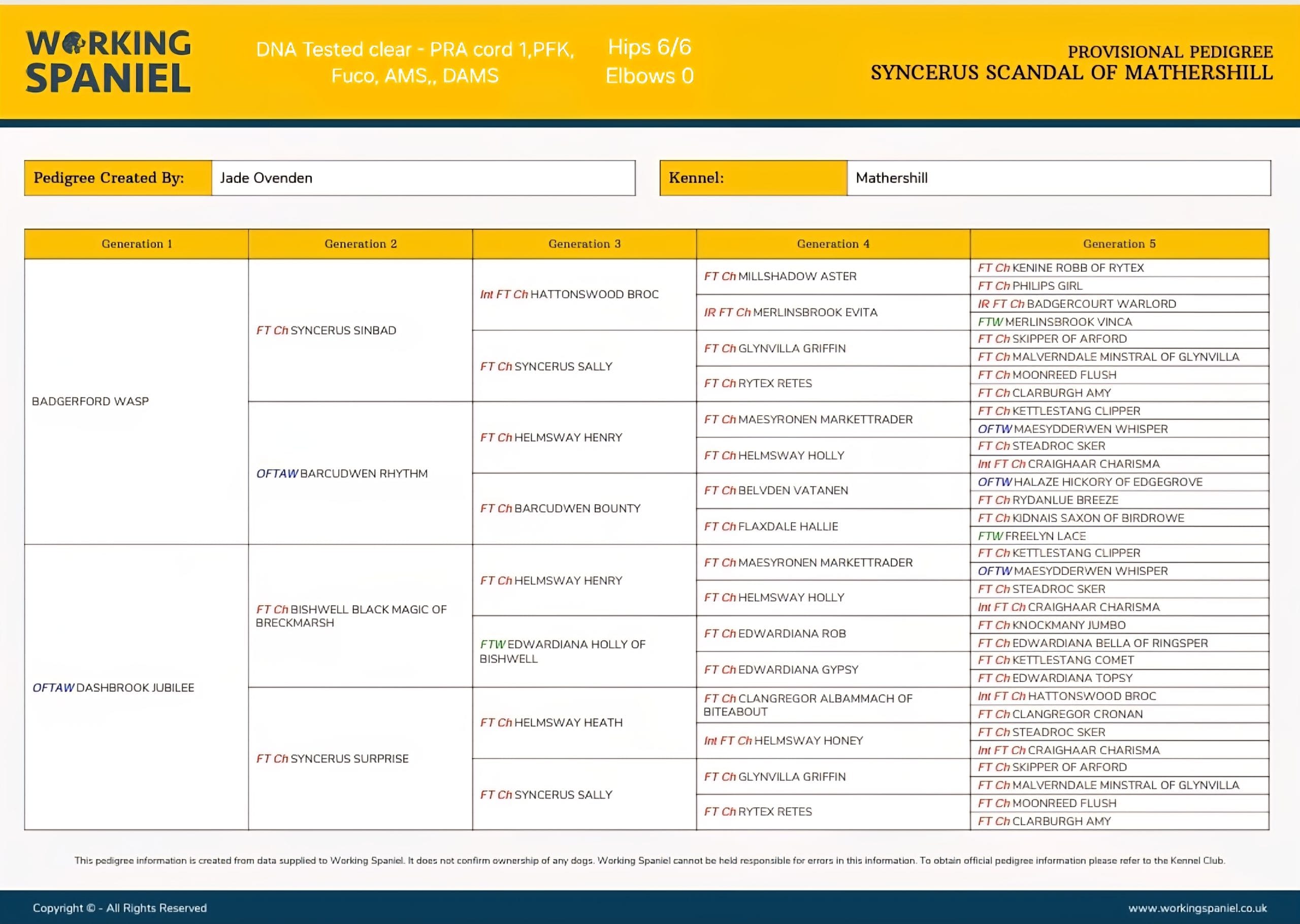 OFTAW Dashbrook Jubilee x Badgerford Wasp