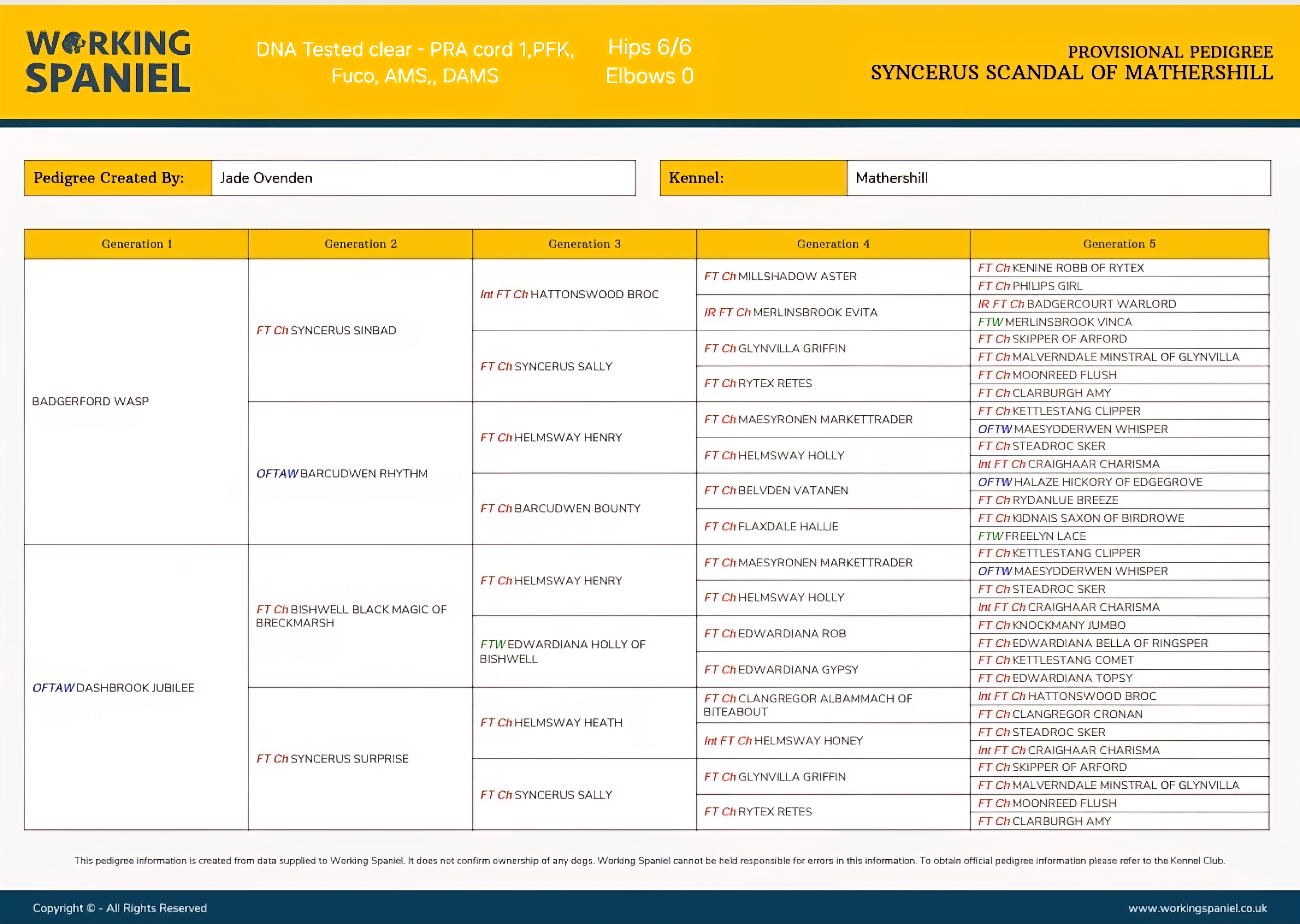 Become a member of Working Spaniel to easily check a dogs’ pedigree and awards information. Sign up for monthly or annual membership, then head to the Member Dashboard to check the dog’s information.